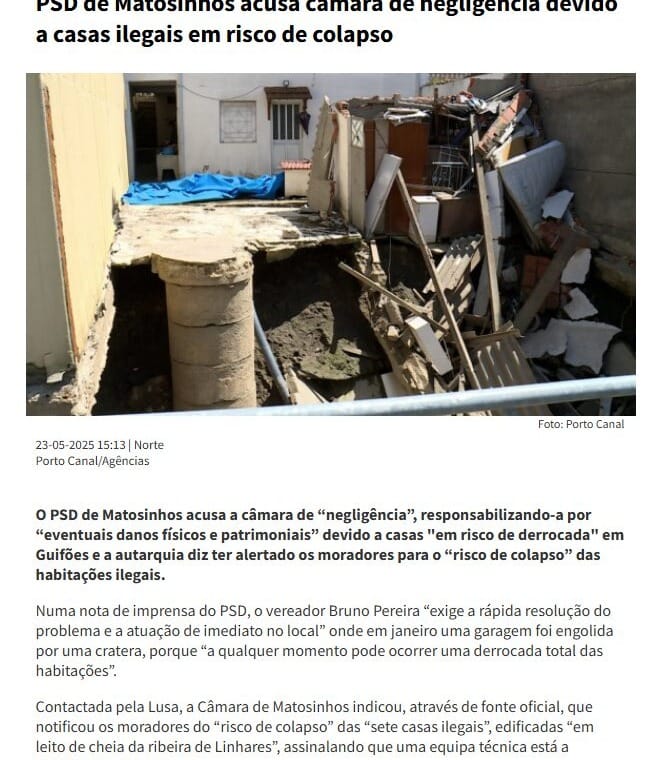 PSD de Matosinhos acusa câmara de negligência devido a casas ilegais em risco de colapso