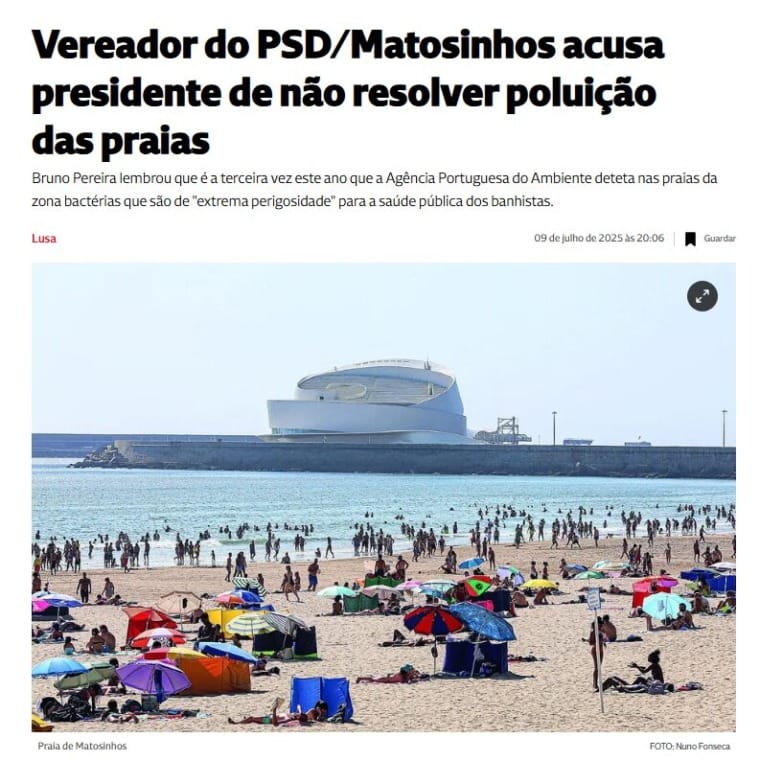 Vereador do PSD/Matosinhos acusa presidente de não resolver poluição das praiasFonte: Correio da ManhãRead more by Bruno Pereira 2025