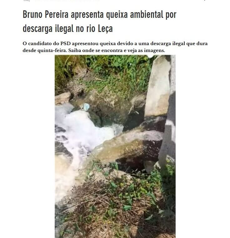 Bruno Pereira apresenta queixa ambiental por descarga ilegal no rio LeçaFonte: Notícias MatosinhosRead more by Bruno Pereira 2025