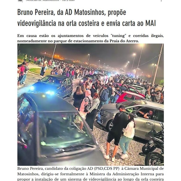 Bruno Pereira, da AD Matosinhos, propõe videovigilância na orla costeira e envia carta ao MAI FONTE: Notícias de MatosinhosRead more by Bruno Pereira 2025