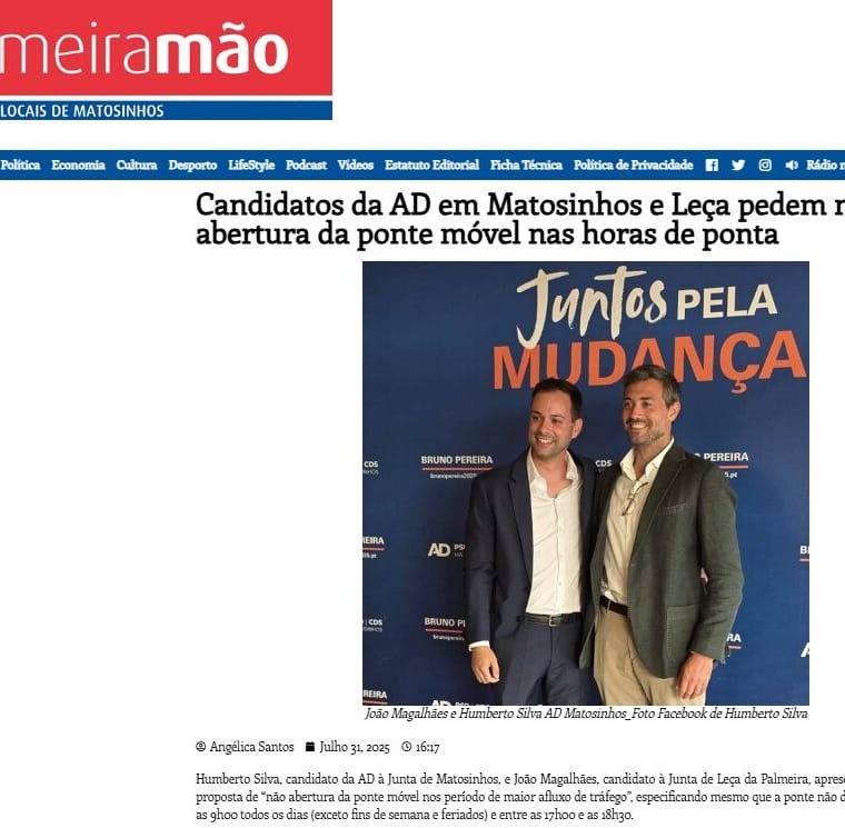 Candidatos da AD em Matosinhos e Leça pedem não abertura da ponte móvel nas horas de pontaFonte: Notícias Primeira MãoRead more by Bruno Pereira 2025